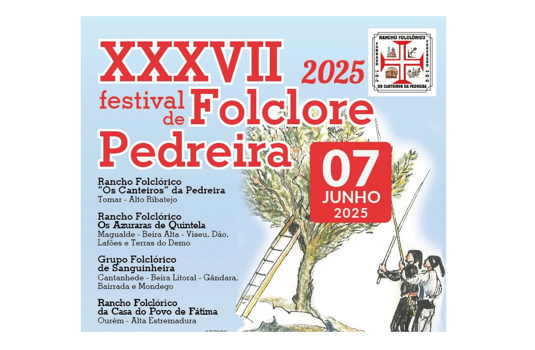 O Rancho Folclórico ²Os Canteiros” da Pedreira vai realizar o seu XXXVII Festival de Folclore, que acontecerá no próximo dia 7 de Junho, no Campo de Jogos da Pedreira – Tomar. O evento tem como objetivo valorizar e difundir as manifestações culturais populares com apresentações de danças típicas e músicas tradicionais dos seguintes grupos folclóricos: Rancho Folclórico “Os Canteiros” da…