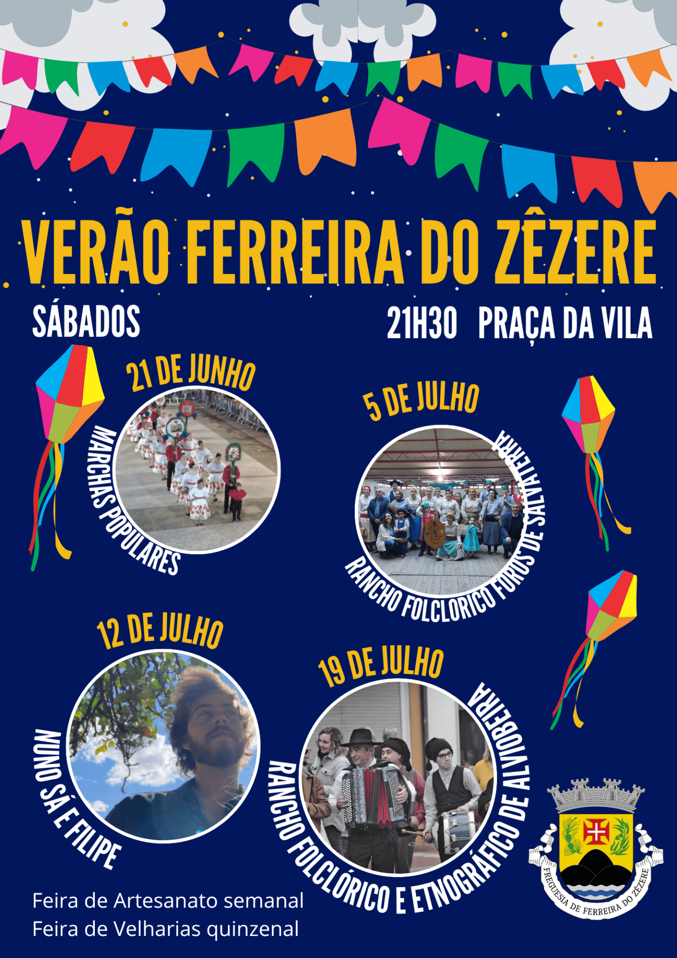A Junta de Freguesia de Ferreira do Zêzere vai realizar a 4.ª edição do evento “Verão Ferreira do Zêzere”, que irá decorrer ao longo dos meses de verão de 2025, com o objetivo de dinamizar o centro da vila, apoiar o comércio local e promover a cultura a residentes e turistas. Com um programa diversificado e de acesso gratuito, este evento terá lugar aos sábados, pelas 21h30, na Praça da Vila…